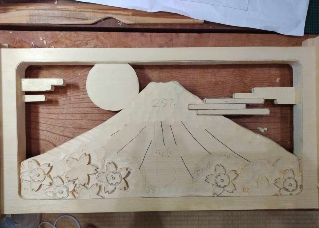 出来上がった彫刻品を家具に組み込んでいきます。
